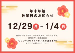 当会は下記の期間、年末年始休業とさせていただきます。